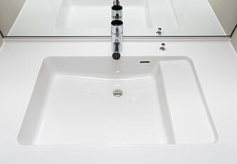 洗面化粧台には、ヘッドが引き出せ、洗面ボウルを洗うときなどに便利なシングルレバー水栓を採用しました。
