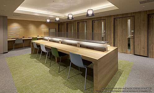 キッチンはフラットな対面カウンターを採用しました。 段差がなく最大約900mmのワイドな奥行きがあるので、配膳する前のお料理の仮置きも持ち上げることなくスムーズにでき、対面側から一緒にお料理を楽しむこともできます。※D・F・F'・H・L・N・Pタイプを除く。※詳細は図面集をご確認ください。
