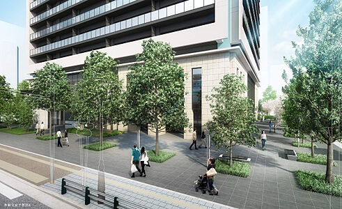 地域に開かれた憩いのスペースを創出。 また、まちづくり計画の壁面後退ルールの適用で、より歩きやすい歩行空間を整備するとともに、店舗誘致も合わせて「綾瀬」駅周辺の賑わいにあふれた街並みづくりに貢献しています。