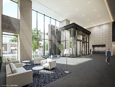 エントランスホールは約7.8mの天井高と開放感あふれる二層吹抜を実現するとともに、約148m2のゆとりのスペースを確保。窓面から射し込む陽光がやすらぎの空間を演出します。