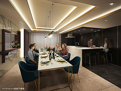 友人との交流や家族の記念日を過ごせるよう、さまざまな集いの場として利用できるパーティルームを設置。対面式のキッチンスペースも採用しているのでその場で料理を振る舞うことも可能です。