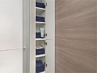 手間をかけず、効率よく食器類が洗浄でき、節水効果にも優れた食器洗い乾燥機をご用意しました。スライド式なので、楽な姿勢で食器の出し入れができます。