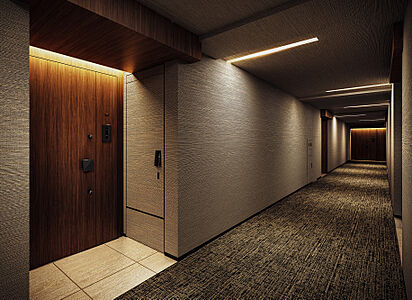 玄関から廊下と、洗面室・トイレの床にタイルを採用。上質感のある室内風景を演出します。