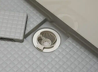特殊な表面処理で汚れがつきにくく、お掃除も簡単。また、水はけの良い素材と形で水たまりを防ぐほか、冷たさを感じにくい床を採用しました。