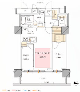 | 備考 | ■靴だけではなく、キャリーケースなども収納可能なシューズインクローク ■洋室(1) に大型ウォークインクロゼット、廊下には大型物入と収納充実プラン ■可動扉を開放すればLDKが「16.1畳大」の1LDKとしても利用可能 |