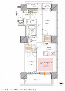 | 備考 | ■玄関には小物置きに便利なカウンター付 ■通風、採光に優れた二面バルコニーを採用 ■2つの居室にはウォークインクロゼットを採用した収納充実プラン ■キッチンには節水に優れたタッチレス水栓を採用 |