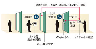 暮らしの安全を守り、万一の場合も安心な24時間遠隔監視システムを採用。共用部分と各住戸のセキュリティ情報を、24時間365日体制で遠隔監視しています。たとえば、共用部の設備等で異常があったときや、住戸内で火災などの異常があったときに、管理会社の監視センターと警備会社のガードセンターに自動通報。必要に応じて警備員が駆けつけ、的確に対応します。※上記概念図は一部変更となる場合があります。