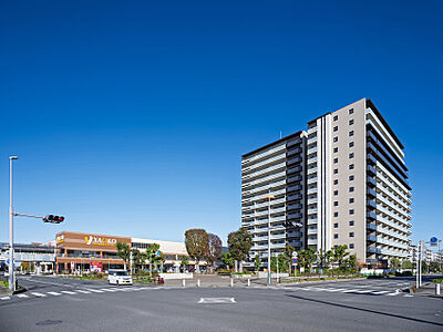 東鷲宮の駅前に存在感を示す地上15階建の全164邸。
