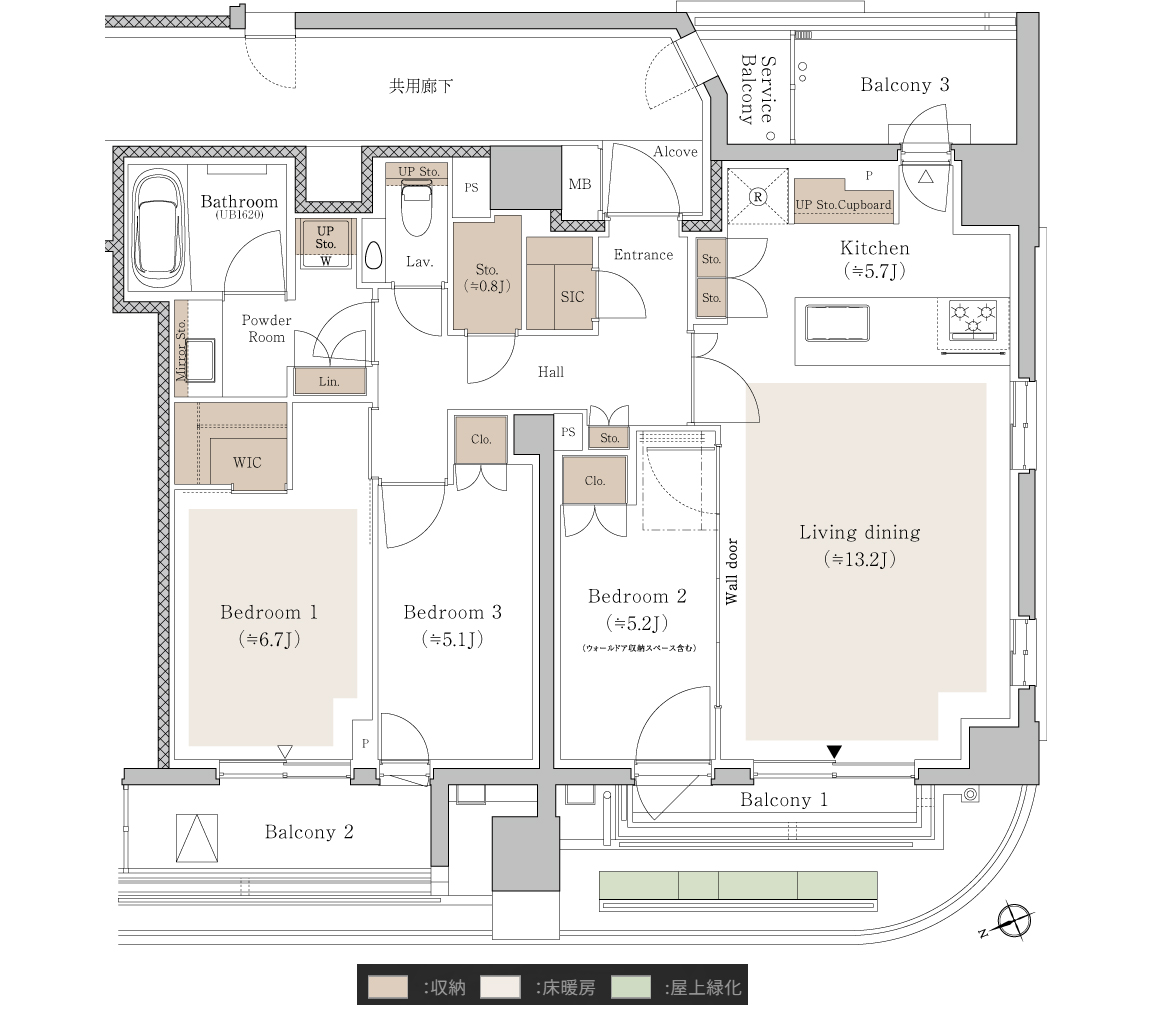 | その他面積 | バルコニー面積/2.97㎡(1)、5.53㎡(2)、4.88㎡(3) |
