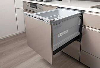 キッチンの鍋や食器、瓶類等を効率的に整理できるスライド収納。ソフトクローズを採用し、静かでスムーズな開閉ができます。