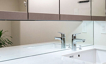 キッチンの水栓には、タッチレス蛇口一体型の水栓を採用。機能性・デザイン性に優れています。※カートリッジの交換は有償です。