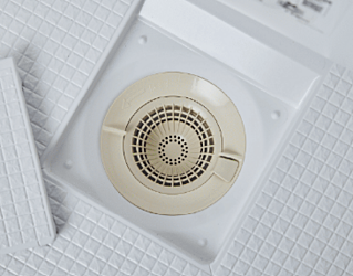 特殊パターンが水を吸い込むように排水します。滑りにくく安全性にも優れています。