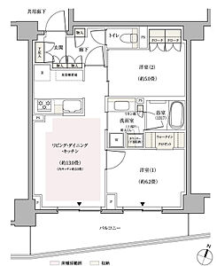 | 備考 | ※リビング・ダイニング・キッチン部分の畳数には、冷蔵庫置場・食器棚置場が含まれています。 ※住戸により、仕様・形状が異なる場合があります。 ※バルコニー手摺りの仕様および形状は階数によって異なります。 ※バルコニーの使用については管理規約等に従っていただきます。 ※代表タイプの間取りを表示しております。販売住戸の間取りについては本広告時の物件概要の「販売住戸の一覧」をご覧ください。 |