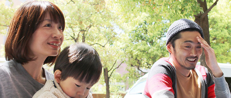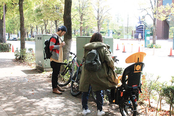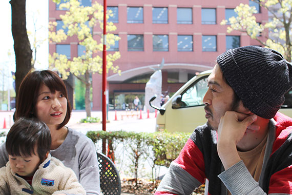 待ち合わせの場所に、2歳のお子さんを乗せて自転車でやってきたYさんご夫妻。さすが地元ですね。
