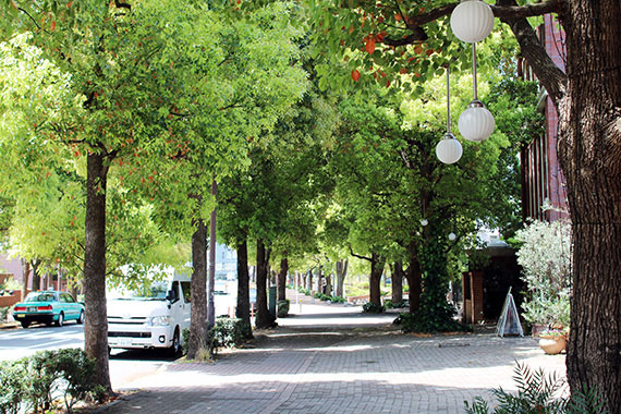 恵比寿ガーデンプレイス近くの、緑豊かな街路樹も恵比寿の魅力のひとつ。