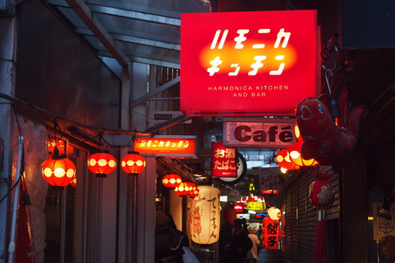 ハーモニカ横丁の名前の由来は、ハーモニカの吹き口のように小さなお店がぎっしり並んでいるから。細い路地には最近おしゃれなバルやカフェも急増して、新旧100軒ものお店がそれぞれの個性的な音を奏でています。