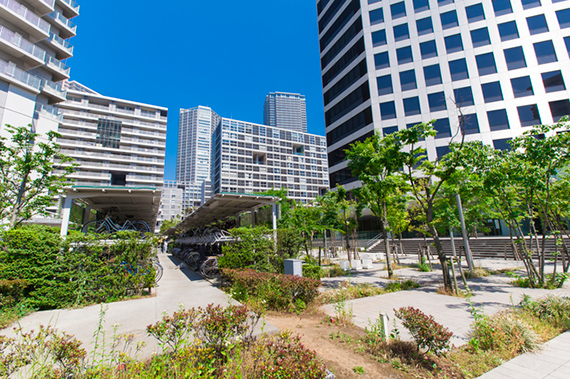 公開空地や道路などの設計にゆとりがあるのが特徴。