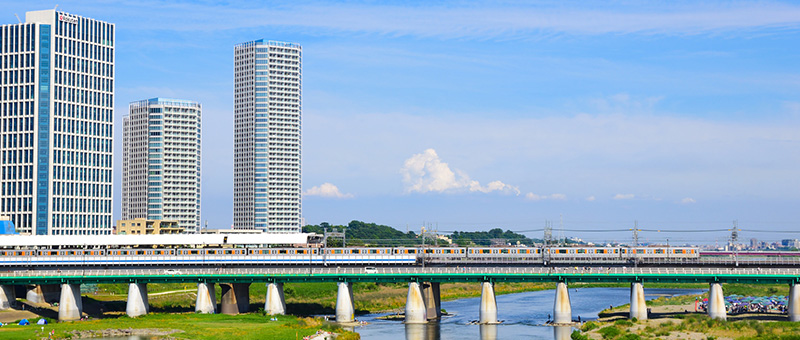 水辺の自然、高層ビル・マンションが共存する二子玉川。