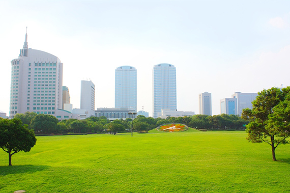 駅からの道には、東京ドームの約15倍もある海浜幕張公園が広がっています。