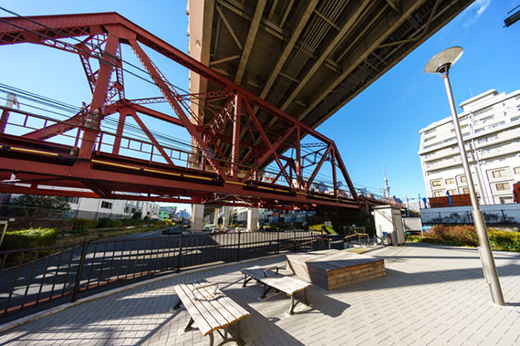 錦糸町駅から徒歩5分の場所にある竪川親水公園。