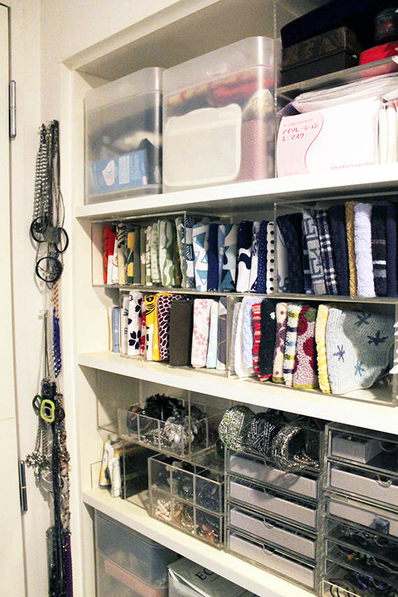こうして選んで残したモノを、取り出しやすい一定の場所にしまうというしくみを考えて収めていきます。そのときに大切なのが、自分が生活する動線上に必要なモノを収めるということだそうです。