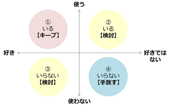 ②と③があることで、いる/いらない、捨てる/捨てないという二者択一にならず、選びやすくなります。