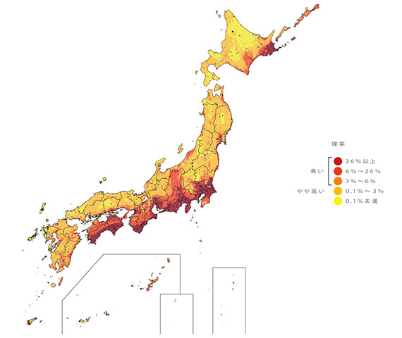 出典:「確率論的全国地震動予測地図 今後30年以内に震度6弱以上の揺れに見舞われる確率