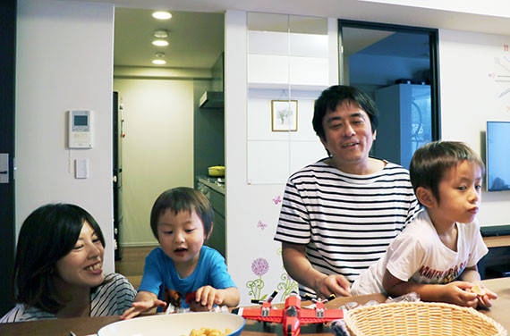 Mさん(妻)男の子2人だから部屋中走り回っているのですが、段差もなくて転ぶこともなく安心です。1階で両隣は住戸ではないため、子どもの声や足音でご近所にご迷惑をかけることがないのも安心です。上の住戸の方には、“子どもが二人いるので、うるさかったらごめんなさい”とあらかじめ言ってありますが、いまのところ問題はないようでよかったです。