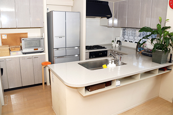 望月さんのキッチンは吊り戸棚のないオープンスタイル。