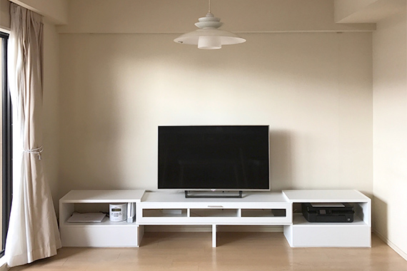 【AFTER】新しく購入したテレビボードは、組み合わせや形を変えられるシステムです。