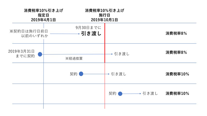 2019年10月1日施行予定の消費税率10%と経過措置期間。