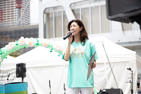 笹田さん地元ならではのご縁です。武蔵小杉はコミュニティ活動が活発で、NPO法人小杉駅周辺エリアマネジメントの活動をなさっている方々から、「コスギフェスタの司会は、この街に住んでいる人にお願いしたい」と声をかけていただきました。そこからコミュニティラジオの番組DJのお仕事に発展するなど、武蔵小杉に住んだことから私自身の仕事の幅も広がりました。