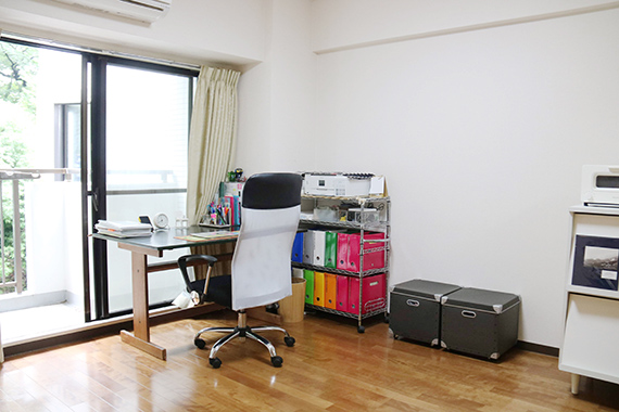 そんな「お家大好き!」な鈴木さんは、マンションを仕事場としても使っています。テラスに面した洋室は仕事場、和室は寛ぐためのプライベートタイム用というように、意識的にオンとオフを空間で切り分けています。