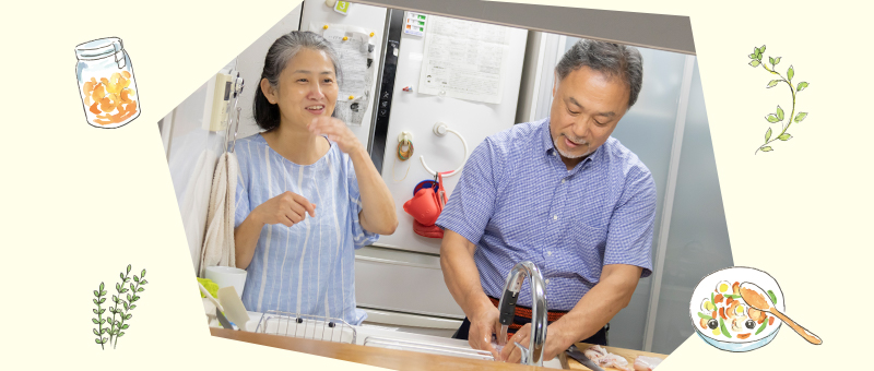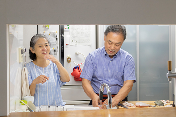 仲良くキッチンに立つ2人。ふだんは朗さんがキッチンマスター。