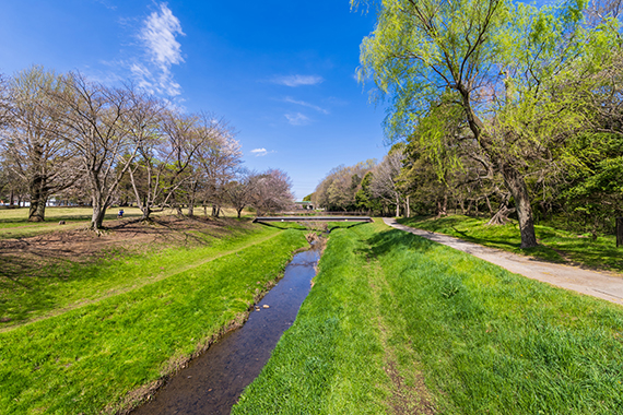 周辺の都立武蔵野公園、多磨霊園、武蔵野の森公園と連なり、