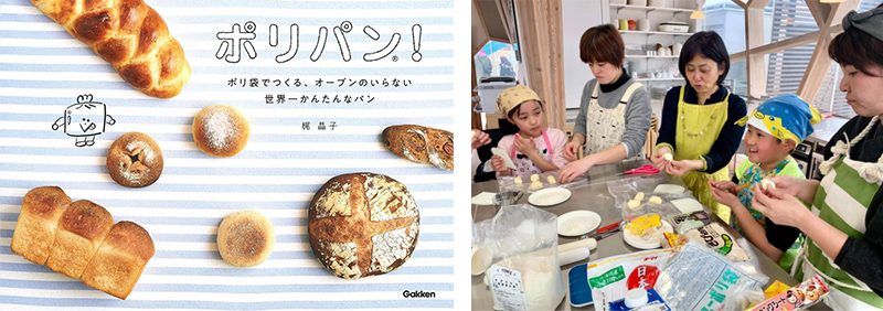 晶子さんの新刊『ポリパン! ポリ袋でつくる、オーブンのいらない世界一かんたんなパン』(学研プラス)では、ホシノ天然酵母を使ったポリパン®︎全65レシピを紹介。