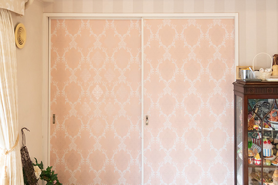 リビングに隣接した和室の扉を壁紙DIYしたもの。