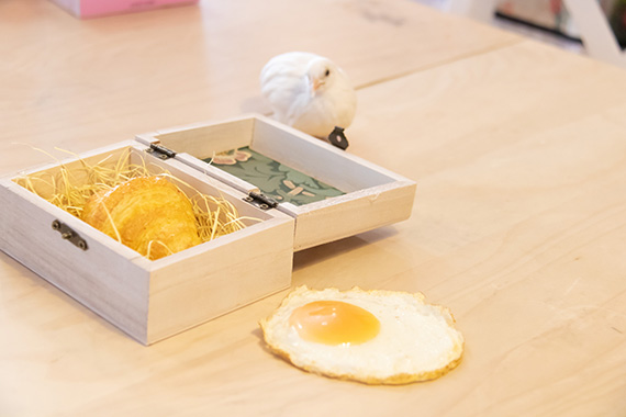 世古さん食品サンプルアート講師の資格を取得して半年後に、ワークショップで教えたいと思い、「目玉焼き」の食品サンプルを持って、自分で東急プラザ銀座店に飛び込み営業しました(笑)。それがご担当者に興味を持っていただいて、お店でワークショップができることに! 生徒さんには、中から光るライト仕様の「クロワッサン」を作ってもらいました。
