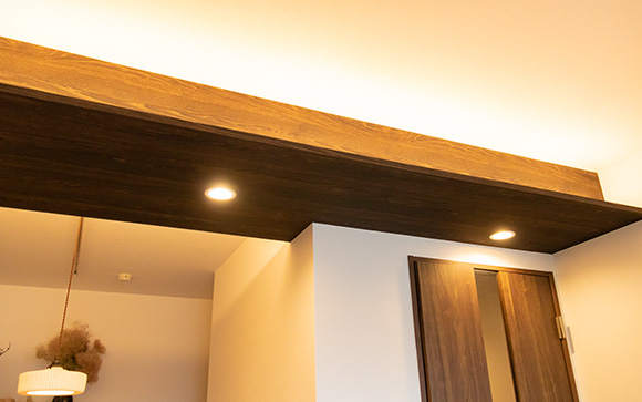 梁の部分に木材を使用して間接照明を埋め込んでいただきました」と斉田さん。