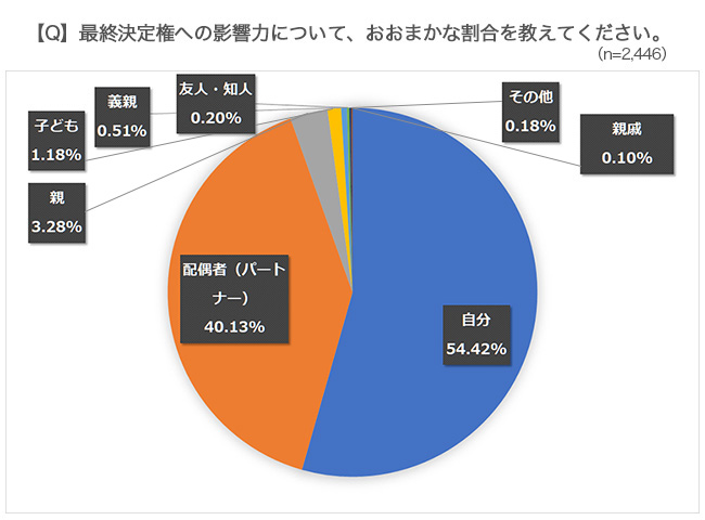 最終決定権は「自分」が54.42%「配偶者」が40.13%と、6:4位の結果。