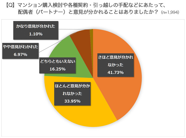 購入検討やその他のことについて、2人の意見の相違はというと「意見が分かれた」と回答した方はわずか8.1%。「意見が分かれなかった」という方はなんと合計75.7%でした。