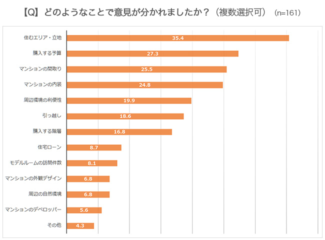 思ったよりも意見が分かれることは少ない?意見の相違第1位は「住むエリア・立地」