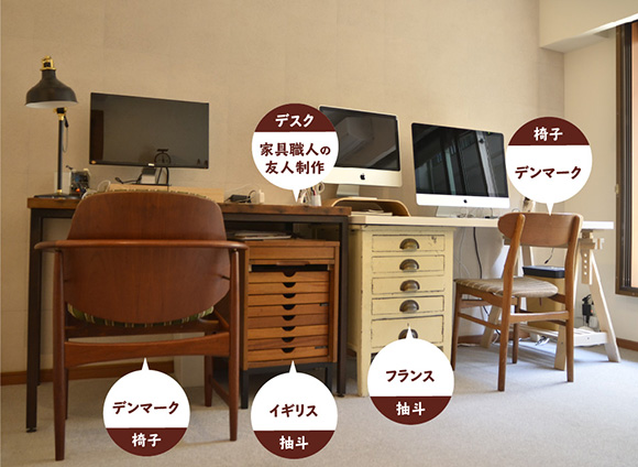 2人共古い家具や小物が大好きなんです」と児玉さん。