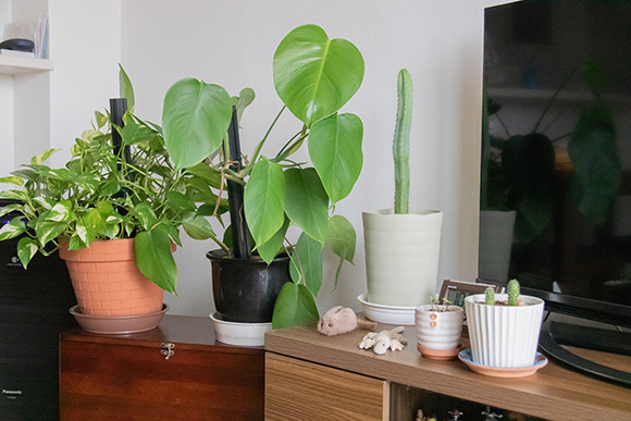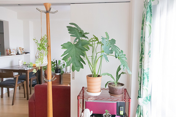 部屋にたくさんある観葉植物は、実家で育てていたもの。一緒にお引っ越ししてきました。