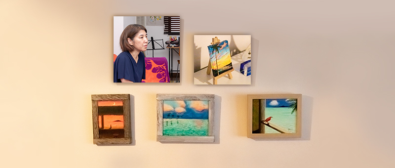 小さなアートは、本棚やテーブルなど、飾る場所を選びません。