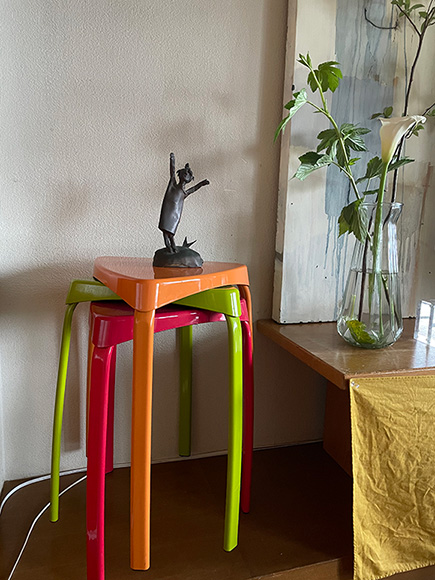 小さなテーブルを飾り台にして、オブジェコーナーになっています。