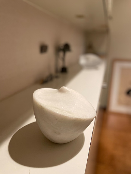 吉村貴子さんの彫刻は、固い石なのにどこか触りたくなるぬくもりのあるフォルム。