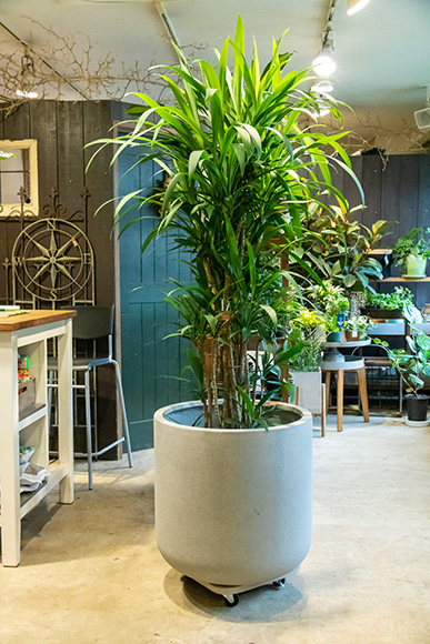 寺井さん観葉植物といっても、もともと外の環境で育つものです。本来は、太陽の光、風、雨に当たるのが植物にとっても良い環境です。ときどきは直射日光の当たらない、外の日陰、たとえばバルコニーに出してあげると良いですね。プラントムーバーは、そういう移動に役立ちます。