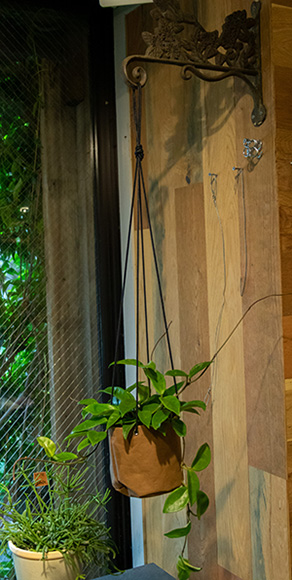 壁や天井からグリーンを吊すハンギングホルダーも、インテリアとして便利です。