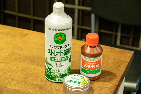 観葉植物のメンテナンスに使う肥料。